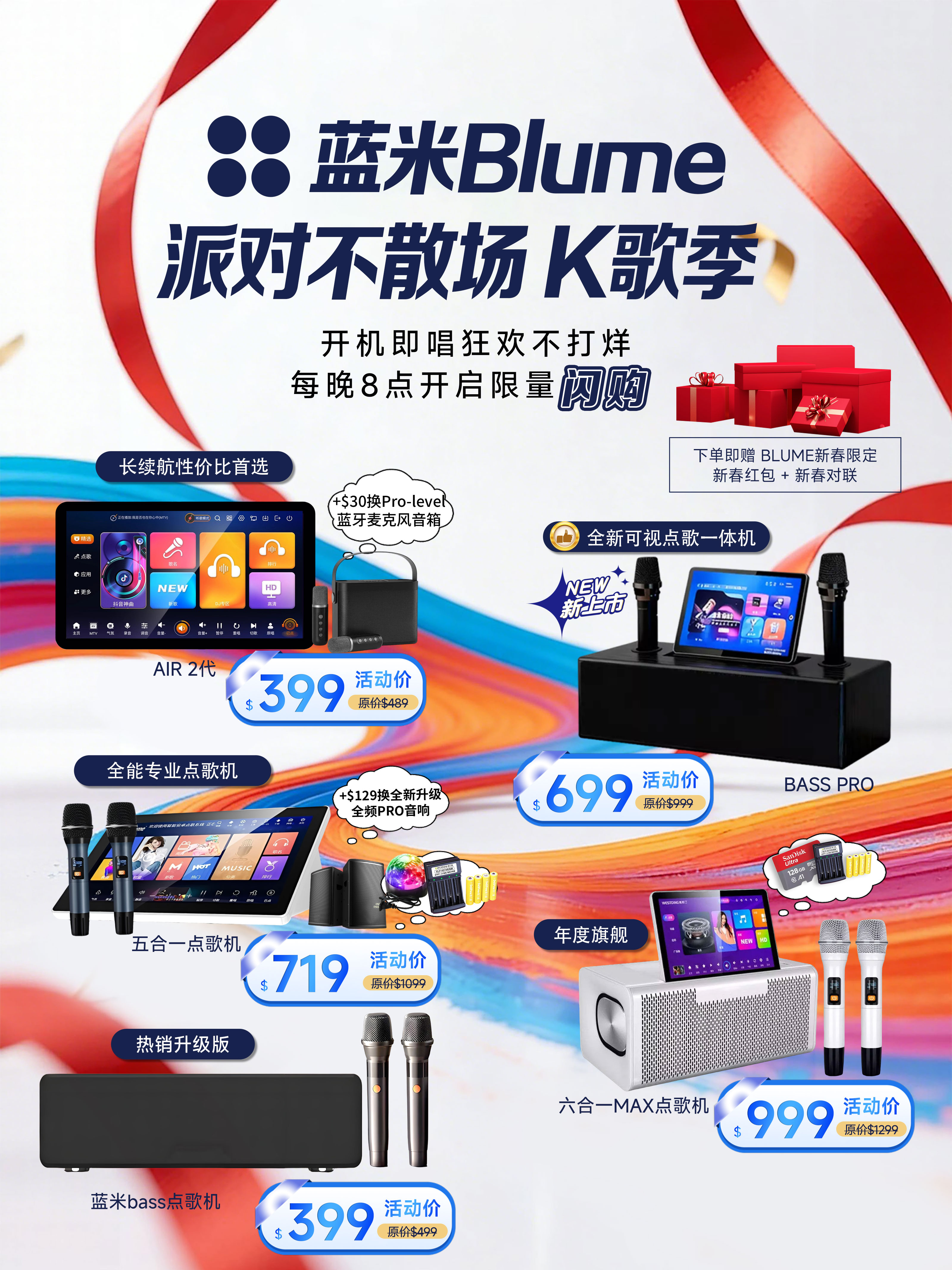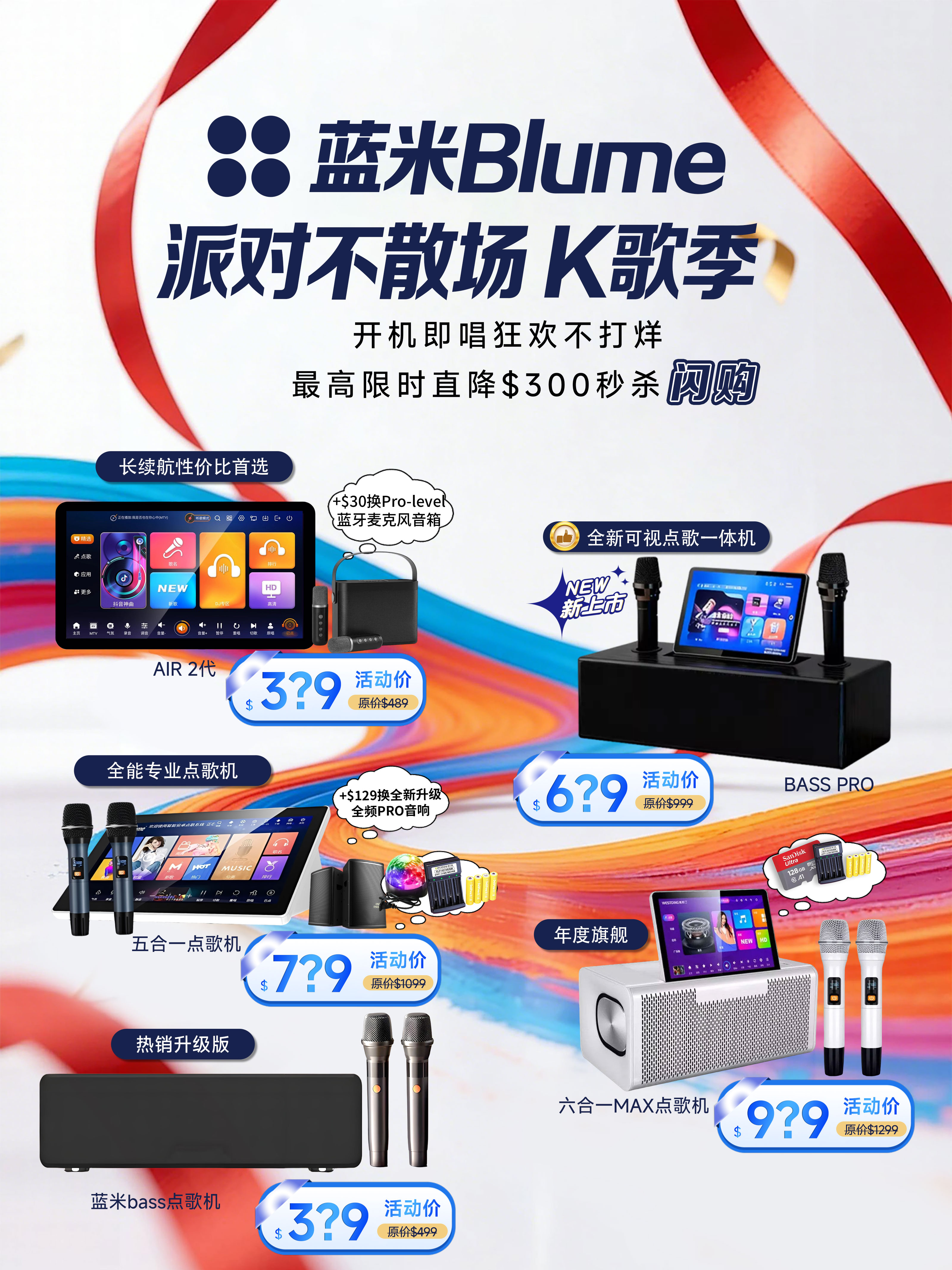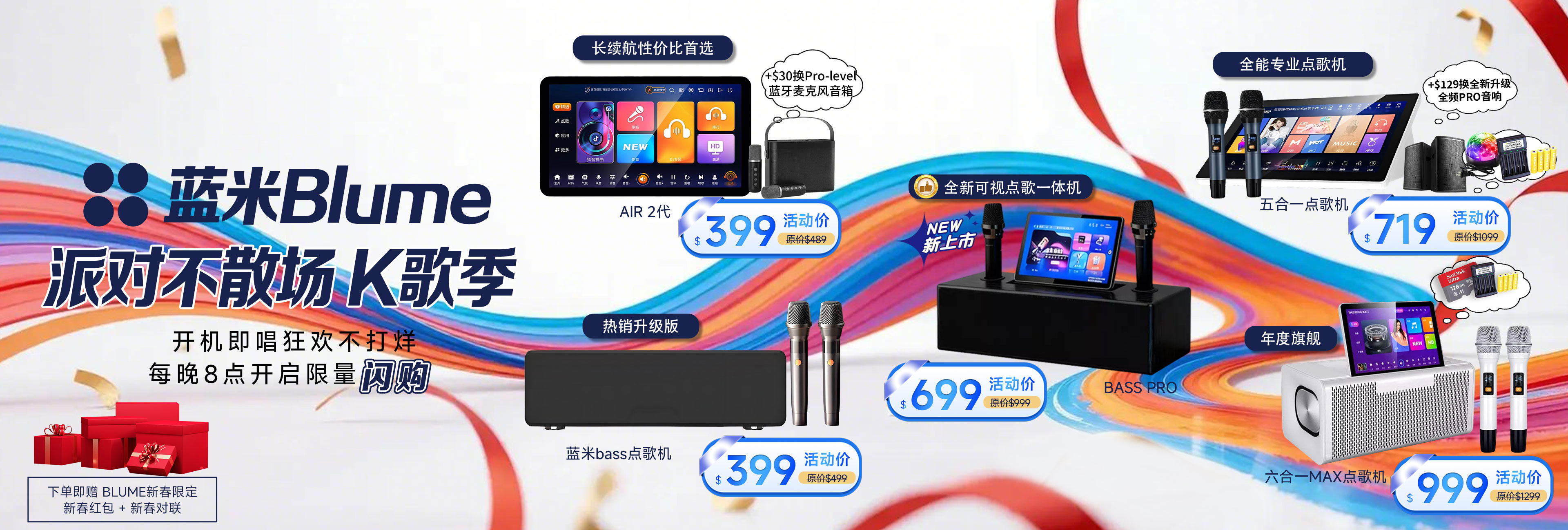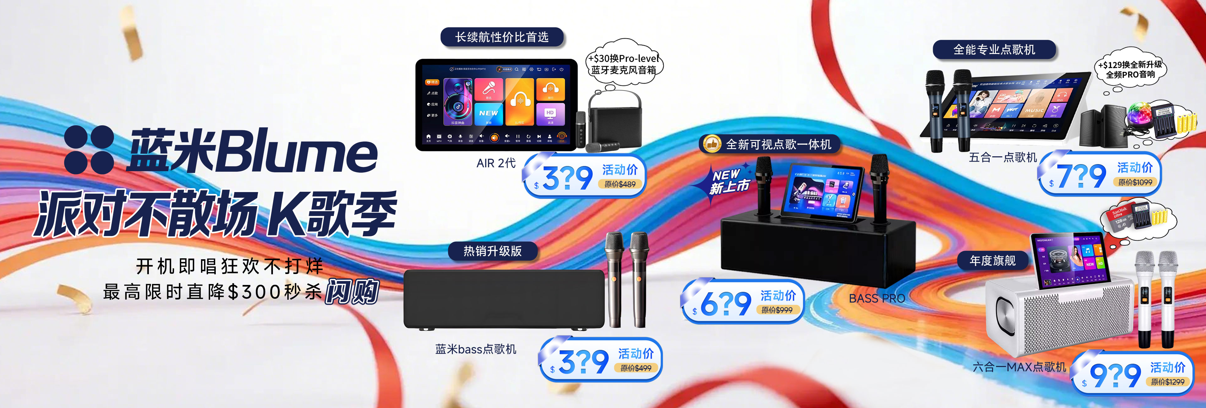 藍米Blume全新款点歌机正式上市!全新轻量化设计,告别传统点歌机的笨重与繁琐,让家庭娱乐与聚会K歌变得更加轻松便捷。此次升级不仅带来更具竞争力的优惠价格,更突破使用场景限制,支持户外随行使用,无论是露营、派对还是朋友聚会,都能随时开启高品质K歌体验。