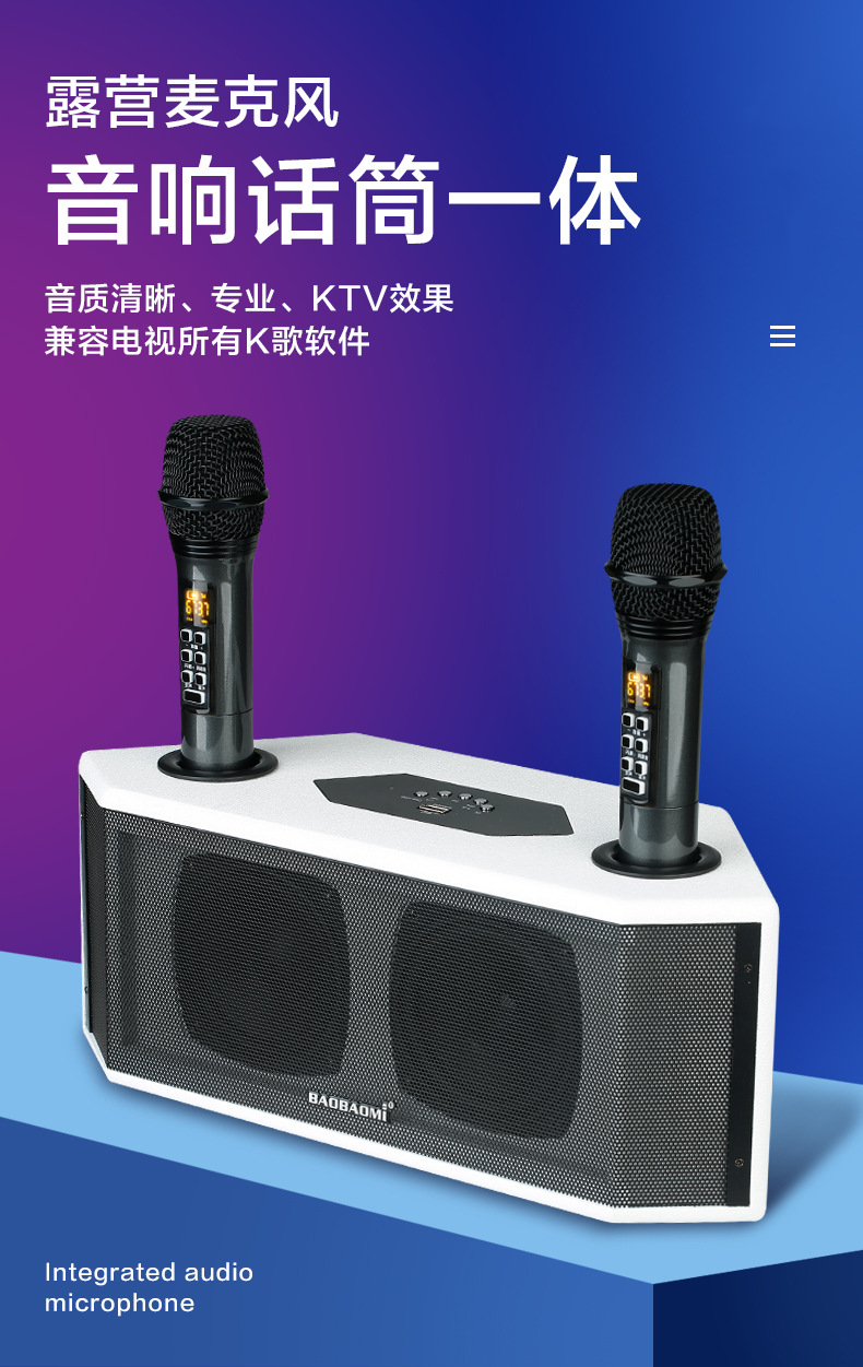 Blume优选家用户外K歌话筒音箱(内置电池无线蓝牙 麦克风音响一体机)