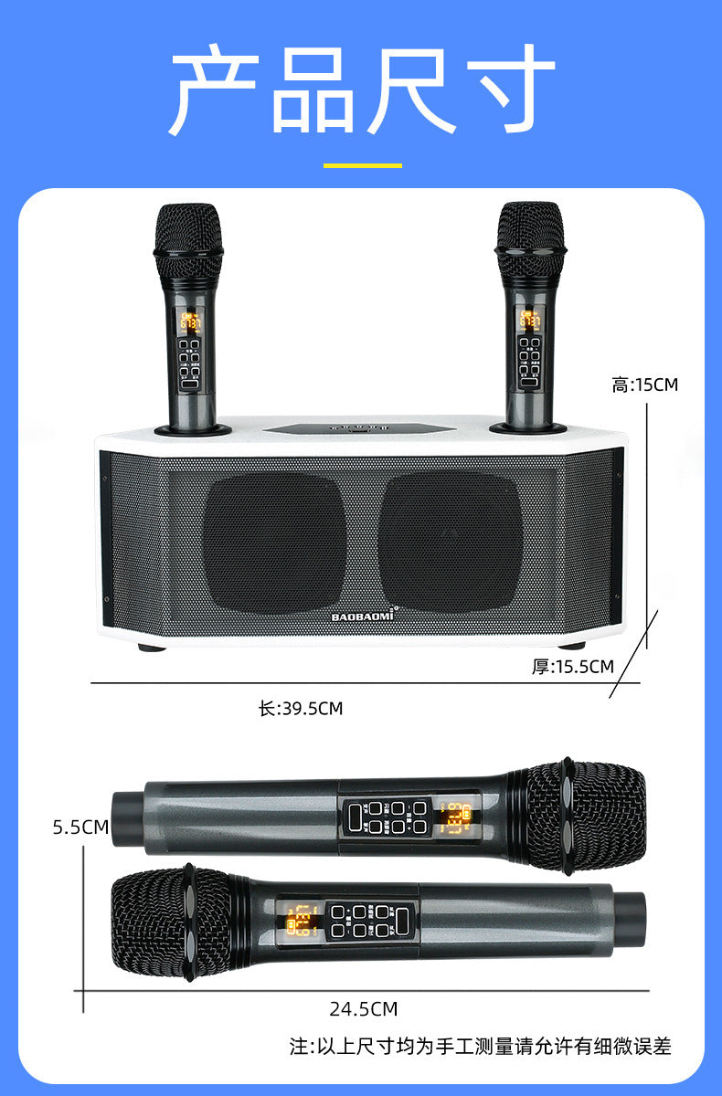 Blume优选 新款家用户外K歌话筒音箱(内置电池无线蓝牙 麦克风音响一体机)