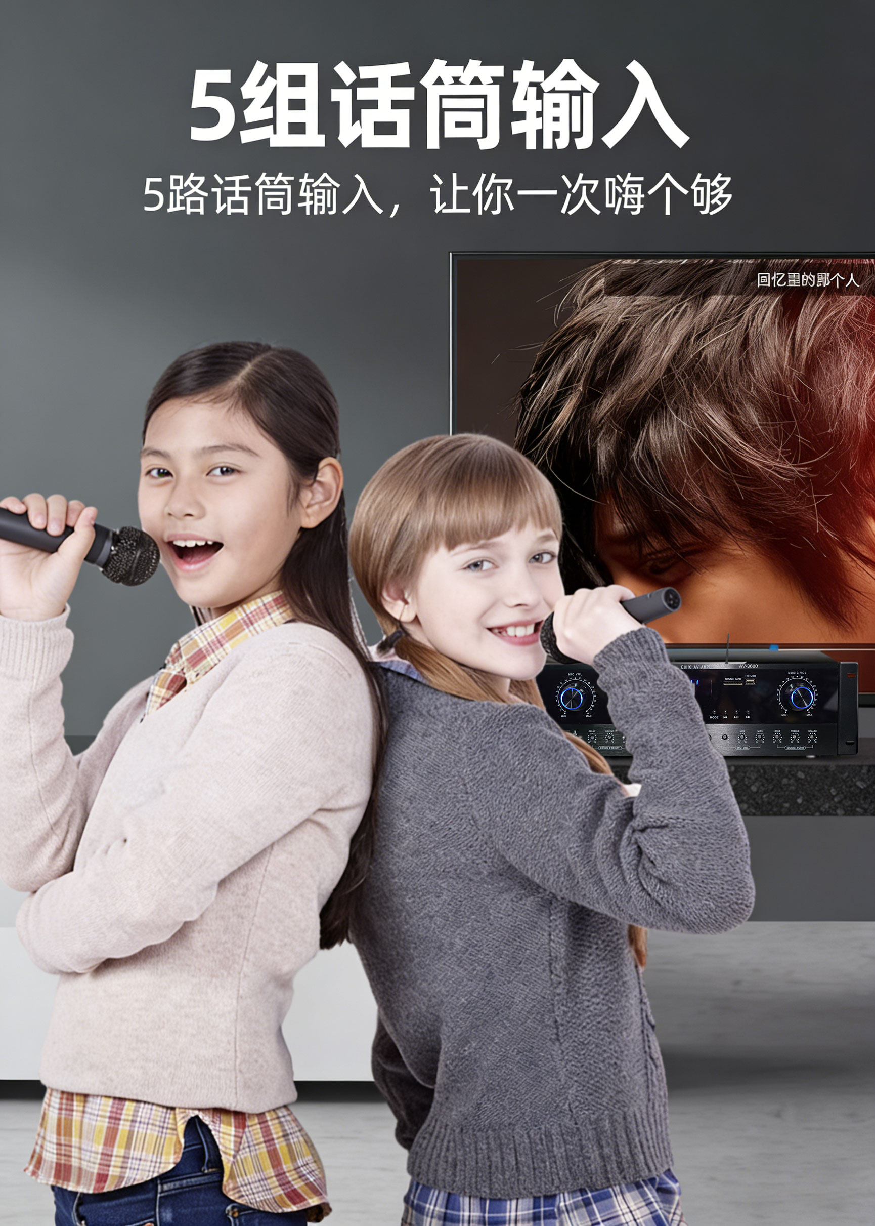 五合一点歌机,自带麦克风,需连接音箱即可开唱,2026款全新旗舰系列,高功率功放,可以连接无源音箱(自备或另外购买)使用,内置DSP,可连接电视投屏,安卓+KTV双系统;适合家庭娱乐